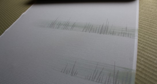 図柄は琵琶湖の伝統漁法「エリ漁」の杭が描かれています。やさしい・涼やかな地色と配色ですね。良質な生地が上品な発色を見事に表してくれています。