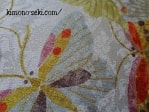 右の写真は衽と衿部分です。無作為に散りばめられているように見えていますが、実は柄が縫い合わせる箇所それぞれが合うようになっています。